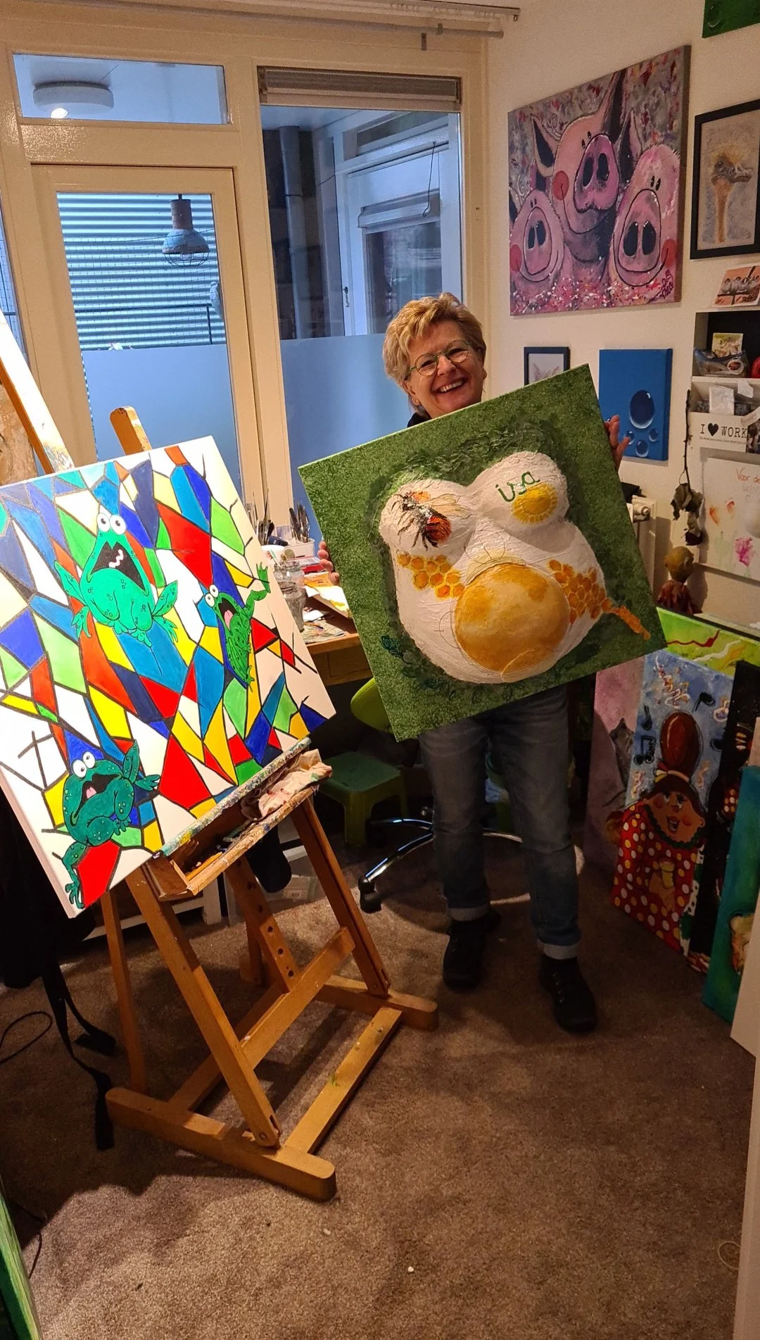Na een werkzaam leven van 47 jaar heb ik het roer omgegooid en ben ik voor mezelf begonnen. Ik heb gekozen om te doen waar ik écht blij en gelukkig van word. Ik verhuur èn verkoop mijn kunstwerken, maak werk in opdracht en deel mijn creativiteit en technieken graag in de vorm van gezellige workshops.